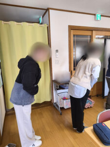 皆様すごろくゲームは経験したことがありますか?このボードは職員や利用者様全員で考えた項目をマスにしています!クイズもあったりみんなの人となりが分かるものとなっています。ゲームとは言ってもただ遊んでいるわけではありませんよ!話し上手になるポイントを意識しながら相手と話すことで、少しづつコミュニケーションに慣れることが目的となっています。職場でのコミュニケーションを円滑にするために日々頑張っています!
